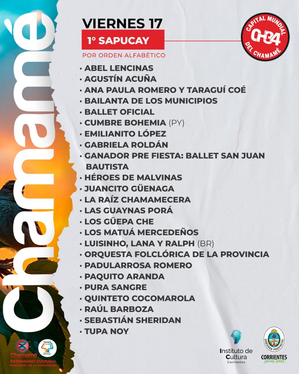 Confirmó que la muestra de carnaval y chamamé, inaugurada en el Centro de Interpretación del Carnaval y Chamamé –por calle 25 de mayo- estará abierta al público hasta hoy viernes 8 de marzo, en el horario de 9 a 13 y de 17 a 20.
