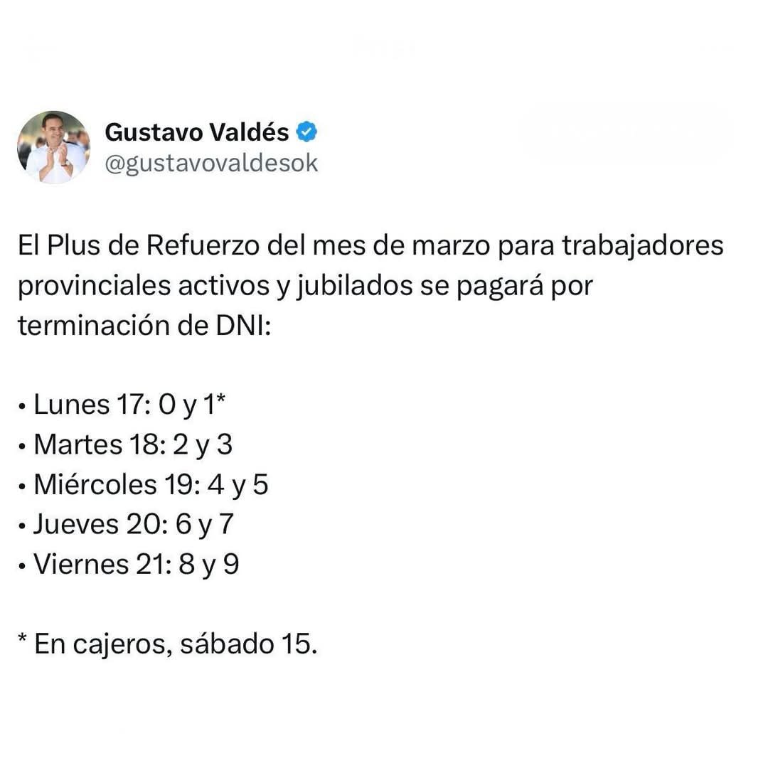Con las últimas mejoras salariales resueltas por el gobernador Gustavo Valdés, el Gobierno provincial aumentó el Adicional Mensual Remunerativo (Plus Unificado) en alrededor del 40% en los últimos nueve meses.
